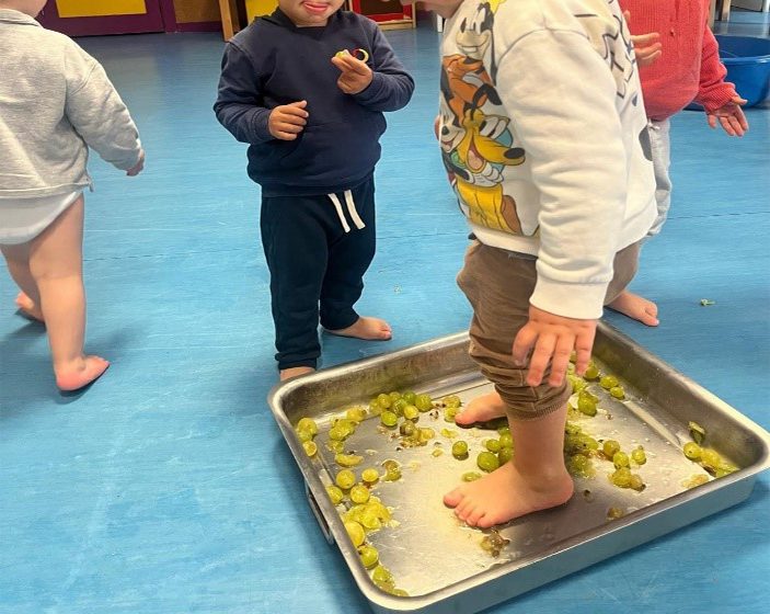 Nuestro alumnado de 2-3 años ha vivido una gran experiencia sensorial y vivencial al celebrar su primera vendimia en el aula. A través de una propuesta lúdica y manipulativa, nuestros pequeños han descubierto las uvas, sus colores, formas, texturas y aromas. Una vez que vimos las uvas y las tocamos,